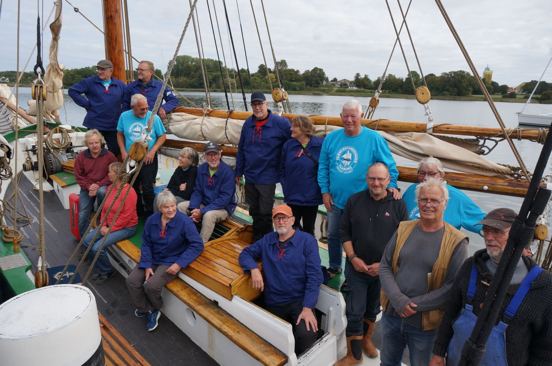 ⎈ Es war eine spontane Feier, die an einem Septemberwochenende 2021 in unserem Museumshafen stattgefunden hat. Aus Dänemark hatte sich die Træskipsforeningen Faaborg, ein Verein zur Erhaltung alter traditioneller Holzschiffe, angekündigt. Ein paar Wochen zuvor hatte der Vorsitzende des dänischen Vereins, Frode Mortensen, ganz informell bei der damaligen Hafenmeisterin Ann-Kristin Jahrmann angefragt, ob im Museumshafen das Anlegen möglich sei.
