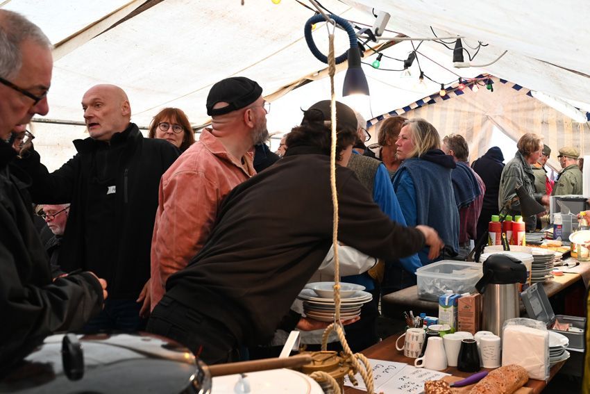 Das war neu! Das Hafenfest am 28. Mai 2025 fing schon am Nachmittag an. Hafenlieger und Touristen ließen sich mit Kaffee und selbstgebackenem Kuchen verwöhnen. Neu war auch das Angebot einer Mini-Hafenrundfahrt mit Thomas und seiner „Old Lady". Teilweise standen Interessierte Schlange auf dem Ponton.