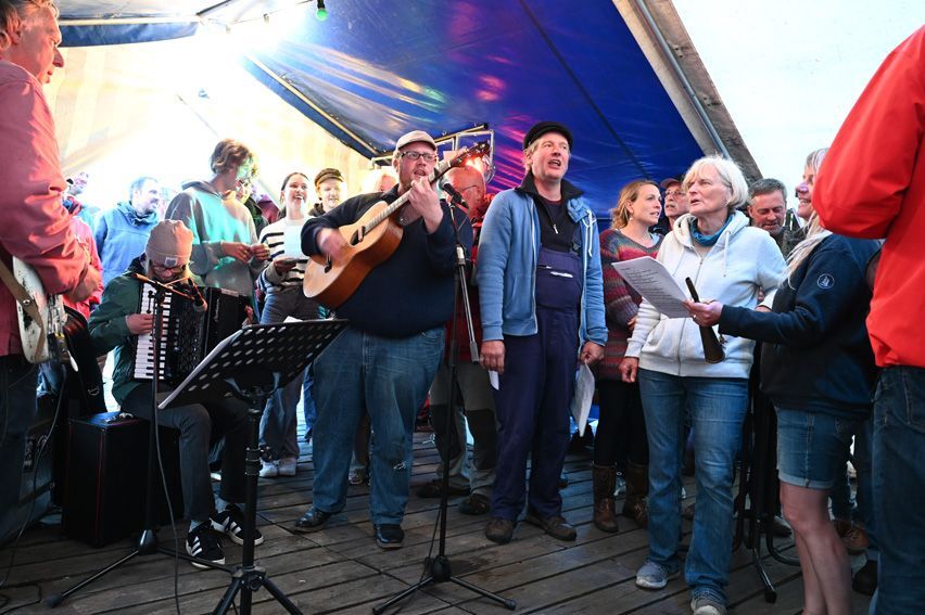 Die „Seestern"-Crew samt Kapitän Jürgen trällerten witzige Lieder aus eigener Feder. Unterstützt wurde das Ganze mit Hupen aus dem Publikum.